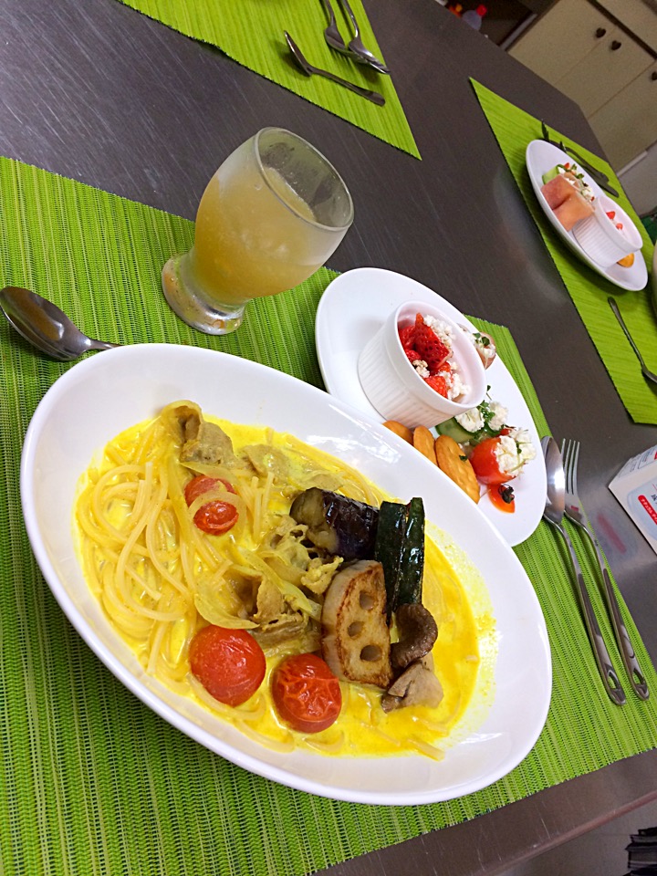 ミルクスープパスタもカレー風味で夏にぴったり。パスタはもちろんご飯に合わせても美味しいですよ。